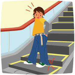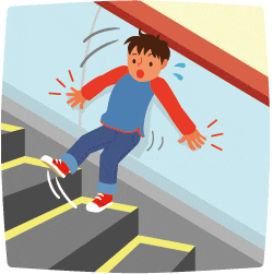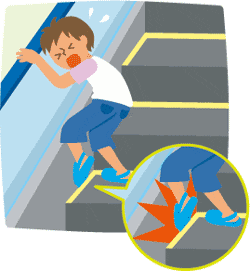 バランスを崩したり、つまずいたりして、転倒するおそれがあります。また、他の利用者に接触して転倒させたりするおそれがあります。