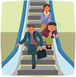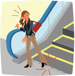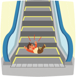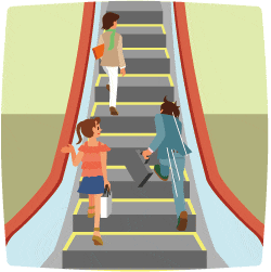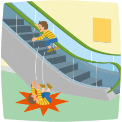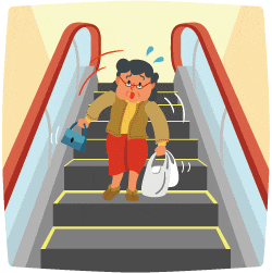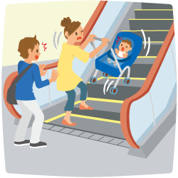 移動手すりにつかまっていないと、ご利用中にバランスを崩したり、エスカレーターの思わぬ原因での急停止したり、他の利用者との接触により転倒したりするおそれがあります。