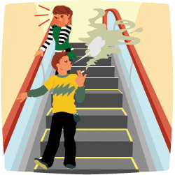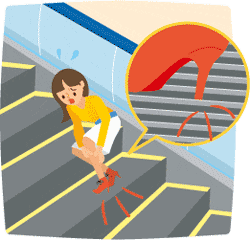 差し込まれた部分が破損し、エスカレーターが急停止することがあります。