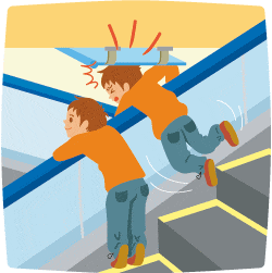 寄りかかっていると、衣服を巻き込まれてケガをしたり、転落したりする原因になります。